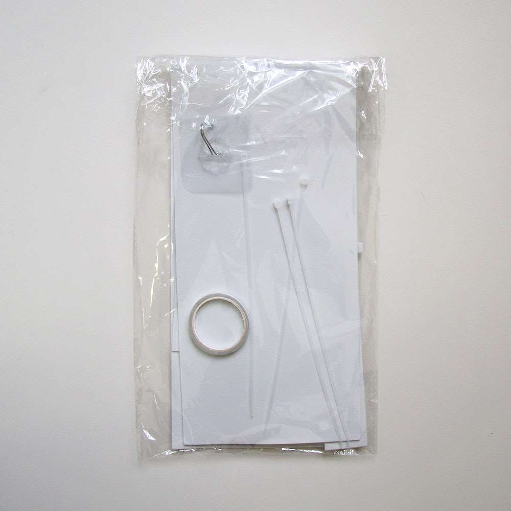 Комплектация: 3 листа, 2 декоратичные полоски, связующая нить, скотч, 4 зажима и крючок
