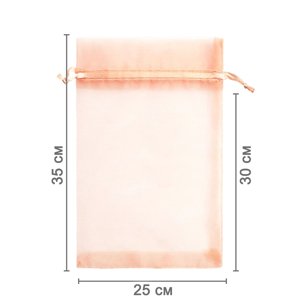 Мешочек из органзы 25 х 35 см — практичный аксессуар для упаковки крупных предметов и подарков. Лёгкая ткань подчёркивает содержимое и придаёт праздничный вид.