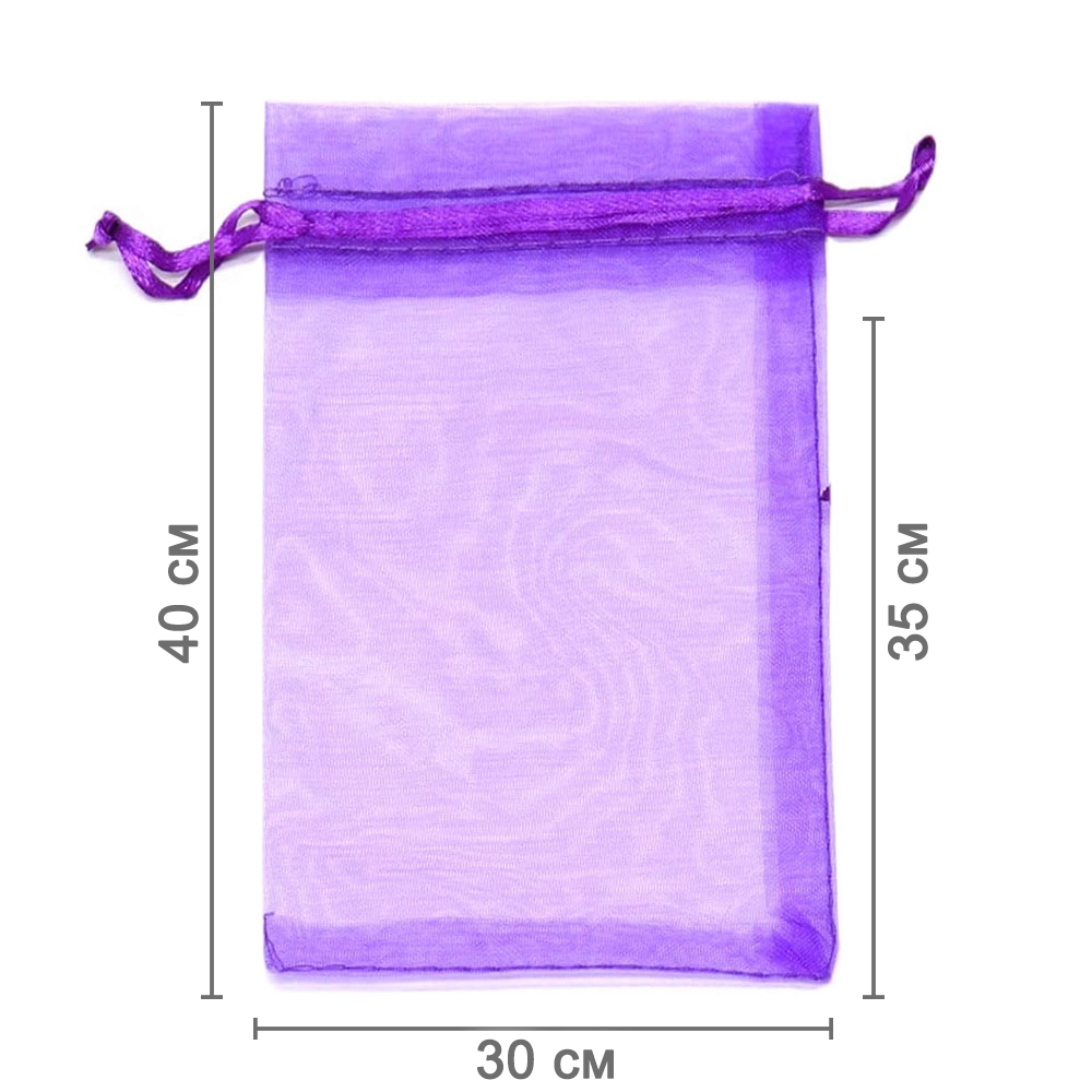 Мешочек из органзы 30 х 40 см — практичный аксессуар для упаковки крупных подарков и хранения предметов. Полупрозрачная ткань подчёркивает содержимое и придаёт праздничный вид.