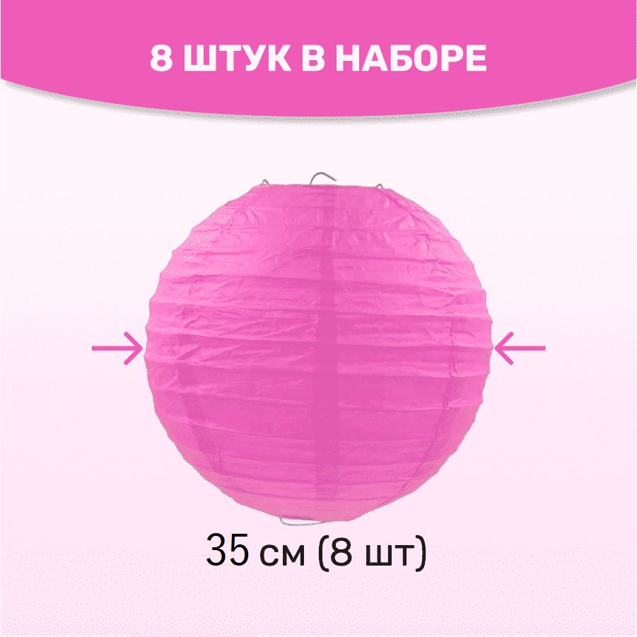 В комплект входит 8 бумажных фонариков и лента атласная.