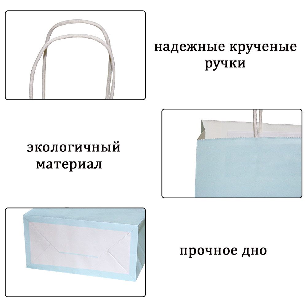 Подарочный пакет из крафтовой бумаги пастельного оттенка с белыми бумажными ручками и белой внутренней стороной.