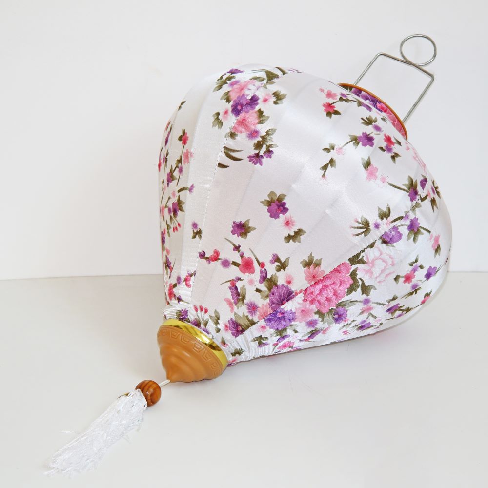 Это традиционные подвесные фонарики ручной работы, изготовленные из шелкового материала с элегантным цветочным узором, которые делают его изысканным и красивым.