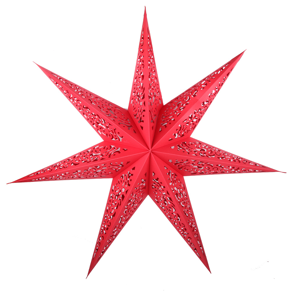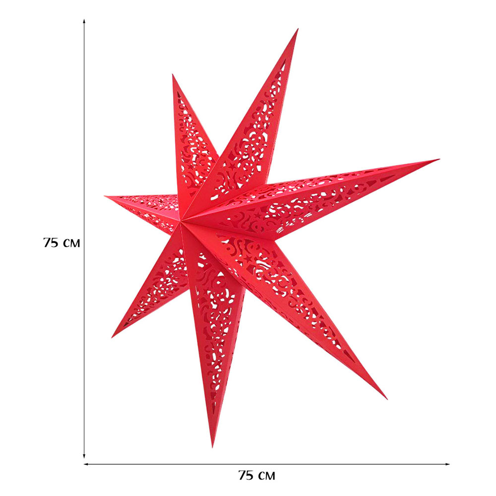 Семиконечная объемная звезда 75 см — великолепный декор из тонкого перфорированного картона. Создает красивые световые эффекты. Поставляется в сложенном виде, в комплекте шнур для фиксации объема и подвеса.