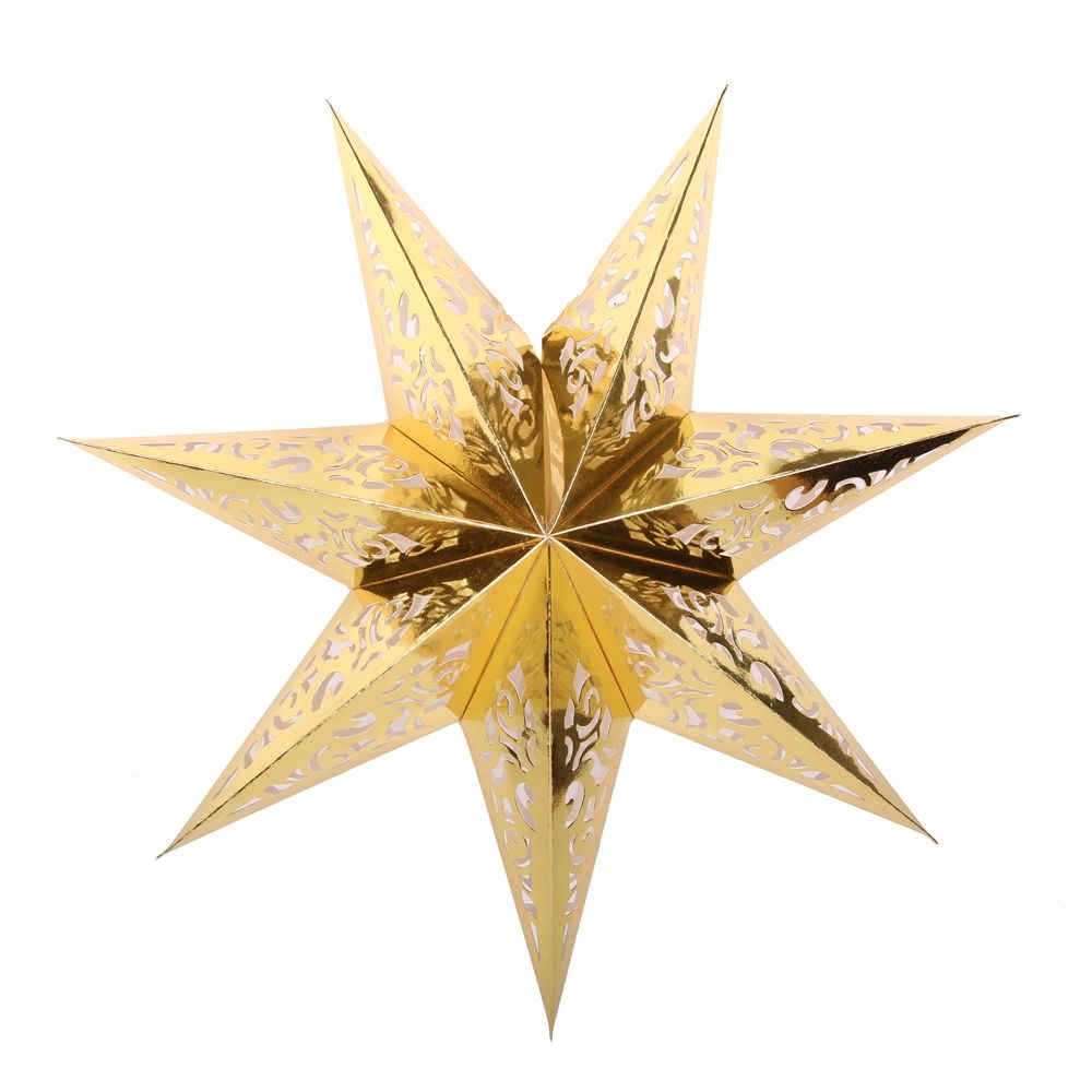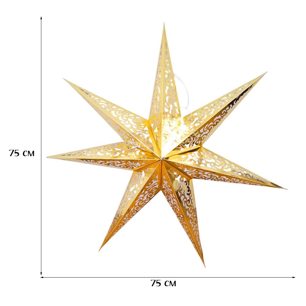Семиконечная объемная звезда 75 см — великолепный декор из тонкого перфорированного картона. Создает красивые световые эффекты. Поставляется в сложенном виде, в комплекте шнур для фиксации объема и подвеса.